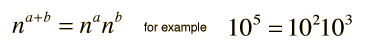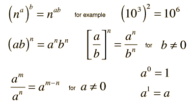 Basic CombinationsSince the raising of a number n to a power p may be defined as multiplying n times itself p times, it follows that ![]() The rule for raising a power to a power can also be deduced ![]() |