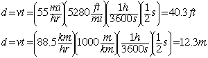 Distance, velocity and timeOn the highway at speed 55 mi/h (88.5 km/h), you close your eyes for half a second during a sneeze. How far do you travel while your eyes are closed? Solution: All constant acceleration problems can be solved using the basic motion equations. This problem involves more in unit conversion than in actual motion calculation, and one approach is to just make fractions out of all the conversion factors so that the desired units remain and the others are canceled out.