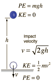 Impact Force from Falling ObjectEven though the application of conservation of energy to a falling object allows us to predict its impact velocity and kinetic energy, we cannot predict its impact force without knowing how far it travels after impact.