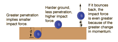 ![]() Note that the above calculation of impact force is accurate only if the height h includes the stopping distance, since the process of penetration is further decreasing its gravitational potential energy. |