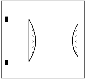 In the Ramsden eyepiece, the two lenses are made of the same kind of glass, e.g., spectacle crown. The lenses are of equal focal length and their separation is equal to the focal length. The field lens coincides with the first principal plane, which is convenient for the placing of crosshairs or reticules, but inconvenient in that it highlights any dust on the lens. This eyepiece is effective in reducing chromatic aberration , doing a better job with longitudional achromatism than with lateral. It is quite effective in reducing spherical aberration and distortion, and removes the problem of coma. In standard use, the objective lens will form an image at the first surface of the field lens. |