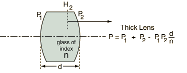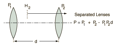 Gullstrand's equation can be used to calculate the effective focal length of a thick lens or two separated lenses with respect to the second principal plane. It is often useful to calculate the front and back vertex powers or focal lengths.