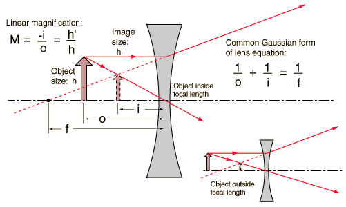 Virtual Image FormationDiverging lenses form reduced, erect, virtual images. Using the common form of the lens equation, f, P and i are negative quantities. ![]() ![]() If a negative focal length is entered to agree with the illustration, then the image is a virtual image on the same side of the lens as the object and will give a negative image distance. If a calculation yields a positive focal length, then the lens is a converging lens rather than the diverging lens in the illustration. The lens equation can be used to calculate the image distance for either real or virtual images and for either positive on negative lenses. The linear magnification relationship allows you to predict the size of the image.