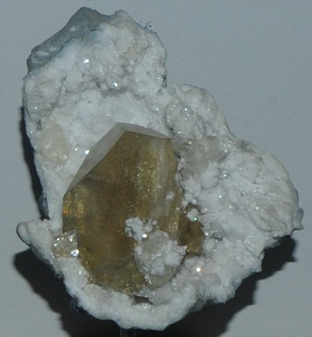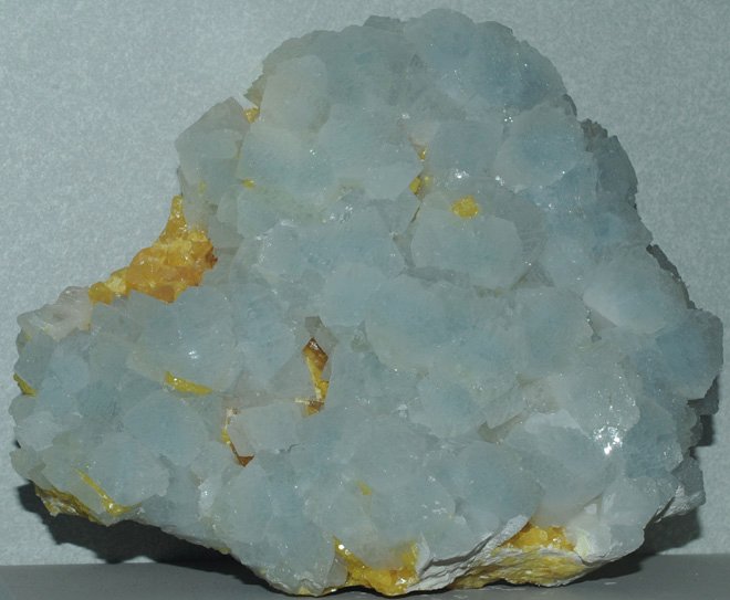 This sample is described as celestite with sulfur. It is about 14 cm across and is from Agrigento Sicillia, Italy. |