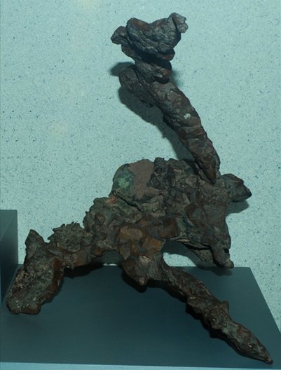 | This massive sample of copper metal is from Keweenaw Peninsula, Michigan. It is about 60cm wide. |