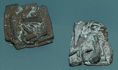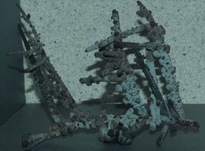 The metallic form at left measures about 15 cmwide.