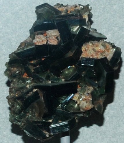 This muscovite sample is about 10 cm across and is from Espera Feliz, Minas Gerais, Brazil. It looks dark like biotite, but is classified as muscovite. |
