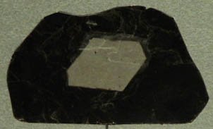 This thin sample shows the lighter color of muscovite in the center, surrounded by darker biotite. The sample is about 12x7 cm and is from Spruce Pine, North Carolina.
