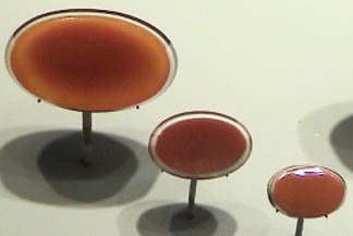 Quartz is silicon dioxide, SiO2. Quartz is abundant in the Earth's crust, being the chemically simplest form of the silicates. All the samples here are displayed in the Smithsonian Museum of Natural History. One of the distinctive varieties of quartz is called onyx. The samples at right have a maximum dimension of about 3.5 cm and are from Brazil.