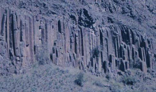 RhyoliteRhyolite is an igneous rock in the class designated as "felsic" rock. This class of rock crystallizes from silicate minerals at relatively low temperatures and with relatively a high percentage of silica . It is at the low temperature extreme of the Bowen reaction series. Rhyolite has a composition similar to granite but has a much smaller grain size. It is composed of the light-colored silicates and is usually buff to pink in color. Occasionally it is light gray. In texture it is classified as aphanitic. It frequently contains voids and glassy fragments, evidence of having formed in a surface environment with rapid cooling. Rhyolite is much less common than granite, but there are large lava flows and deposits of rhyolite in Yellowstone Park, Wyoming, USA. ![]() Photo by Nydia Hanna These rhyolite formations are along the Snake River in Hell's Canyon on the Idaho-Oregon border. The structures are referred to as "columnar jointing" and were the the most dramatic geologic features in appearance. There is much to be learned about geology in the canyon. It is like a time machine, which takes you back in history through several geologic eras. The geologists on the trip referred to a study of Hell's Canyon by Tracy Vallier, "Islands and Rapids, a Geologic Story of Hell's Canyon." Vallier describes the areas where the columns occur as Permian rhyolite dikes. The columnar jointing is associated with lava flows and dikes of the Columbia River Basalt Group. |