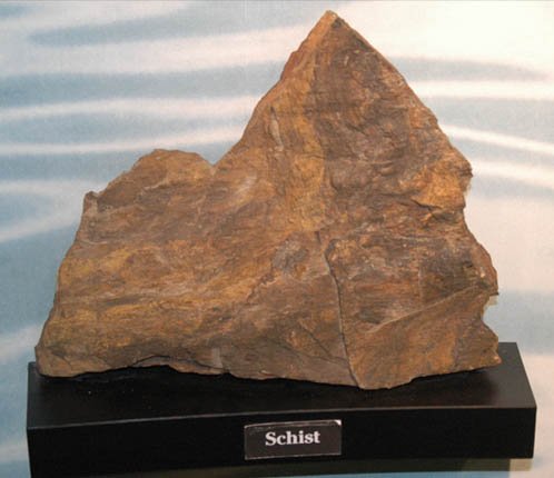 ![]() This example of schist is from Warm Springs, where a stressed formation produces it along with quartzite and gneiss, two other metamorphic rocks. The formation produces a large warm spring.