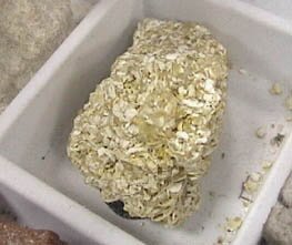 A few drops of acid provides a test for carbonates. This limestone sample bubbles vigorously in response to the acid as CO2 is released.