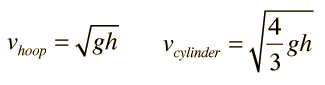 Hoop and Cylinder MotionGiven a race between a thin hoop and a uniform cylinder down an incline. Which will win?