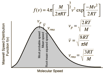 substitution gives the root mean square (rms) molecular velocity: ![]() From the Maxwell speed distribution this speed as well as the average and most probable speeds can be calculated. |