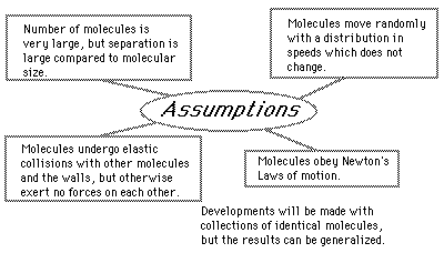 Kinetic TheoryThe kinetic theory of gases is the study of the microscopic behavior of molecules and the interactions which lead to macroscopic relationships like the ideal gas law.![]() The study of the molecules of a gas is a good example of a physical situation where statistical methods give precise and dependable results for macroscopic manifestations of microscopic phenomena. For example, the pressure, volume and temperature calculations from the ideal gas law are very precise. The average energy associated with the molecular motion has its foundation in the Boltzmann distribution, a statistical distribution function. Yet the temperature and energy of a gas can be measured precisely.