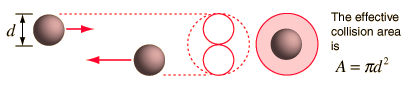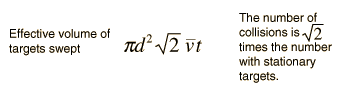 which revises the expression for the effective volume swept out in time t ![]() The resulting mean free path is ![]() The number of molecules per unit volume can be determined from Avogadro's number and the ideal gas law, leading to ![]() Calculation |