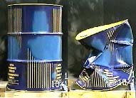 Dan Stamm, a physics teacher at Campbell High School in Smyrna, GA constructed a platform for heating water in a steel drum. The drums used had a surface area of about 3000 square inches. The force of one atmosphere of pressure on that area is about 44,000 lbs or 22 tons! Nevertheless, such cans can be made of reasonably thin steel because the same force normally acts outward from the inside of the vessel. The procedure involved pouring about a gallon of water into the drum (just enough to cover the bottom) and and heating it over a propane burner for 15 to 30 minutes. The water is brought to the boiling point where its vapor pressure is equal to atmospheric pressure. The vapor will then push most of the air out of the can. The can is then sealed as the heat is removed. If the drum is cooled quickly, the sudden drop in vapor pressure will result in enough net inward pressure to crush the can.