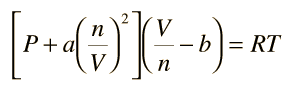 van der Waals Equation of StateThe ideal gas law treats the molecules of a gas as point particles with perfectly elastic collisions. This works well for dilute gases in many experimental circumstances. But gas molecules are not point masses, and there are circumstances where the properties of the molecules have an experimentally measurable effect. A modification of the ideal gas law was proposed by Johannes D. van der Waals in 1873 to take into account molecular size and molecular interaction forces. It is usually referred to as the van der Waals equation of state. ![]() The constants a and b have positive values and are characteristic of the individual gas. The van der Waals equation of state approaches the ideal gas law PV=nRT as the values of these constants approach zero. The constant a provides a correction for the intermolecular forces. Constant b is a correction for finite molecular size and its value is the volume of one mole of the atoms or molecules.