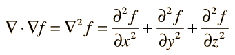 The LaPlacian The divergence of the gradient of a scalar function is called the Laplacian. In rectangular coordinates: ![]() LaPlacian in other coordinate systems |