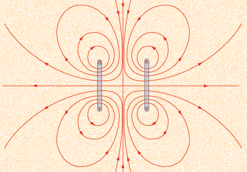 Quadrupole Magnetic FieldTwo properly spaced coils with currents in the same direction can produce a useful magnetic field geometry in the Helmholtz coil arrangement. Also useful is the arrangement obtained by reversing one of the coils to produce a magnetic quadrupole field. ![]()