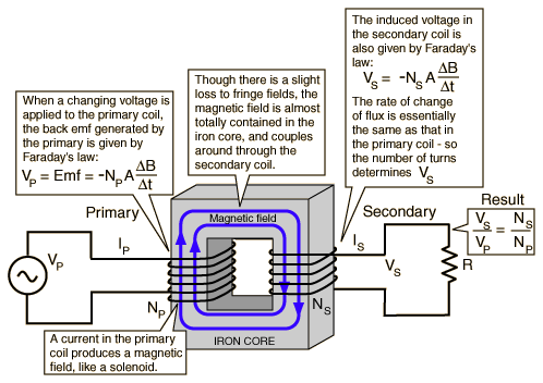 Notes: For this exploratory calculation, you may enter data for any parameter except the power. Then click on the active text for the parameter you wish to calculate; values will not be forced to be consistent until you do. For primary calculations, the voltage and number of turns in the secondary will be considered to be established and vice versa. Default values will be entered for unspecified parameters, but all values except the power may be changed.