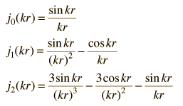 Spherical Bessel FunctionsA specific class of special functions called spherical Bessel functions arises in problems of spherical symmetry like the spherical potential well in quantum mechanics. The first three forms are ![]() From the first form, the higher order forms can be generated from the relationship ![]() It is sometimes useful to have the limiting cases for these functions for very large or very small distances: ![]() |