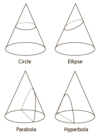 The curves you get when you slice a cone are called conic sections and have many applications. Click on one for further details.