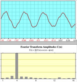 Fourier analysis of a periodic function refers to the extraction of the series of sines and cosines which when superimposed will reproduce the function. This analysis can be expressed as a Fourier series. The fast Fourier transform is a mathematical method for transforming a function of time into a function of frequency. Sometimes it is described as transforming from the time domain to the frequency domain. It is very useful for analysis of time-dependent phenomena.