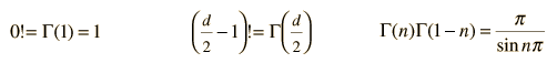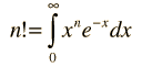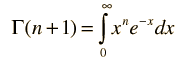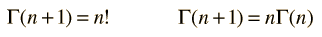 The Gamma FunctionA function which shows up often in statistical calculations is the gamma function: ![]() This can be related to another integral ![]() leading to the relationships ![]() Some other common relationships with gamma functions: ![]() One of the applications of the gamma function is in the evaluation of statistical integrals. |