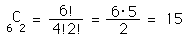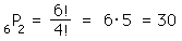 For example if you have six persons for tennis, then the number of pairings for singles tennis is ![]() But this really double counts, because it treats the a:b match as distinct from the b:a match for players a and b. So in only 15 matches you could produce all distinguishable pairings. If you don't want to take into account the different permutations of the elements, then you must divide the above expression by the number of permutations of r which is r!. This result is called a "combination". The combination relationship is ![]() The number of tennis matches is then the combination ![]() |