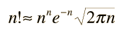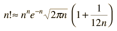 Stirling's Approximation for n!When evaluating distribution functions for statistics, it is often necessary to evaluate the factorials of sizable numbers, as in the binomial distribution: ![]() A helpful and commonly used approximate relationship for the evaluation of the factorials of large numbers is Stirling's approximation: ![]() A slightly more accurate approximation is the following ![]() but in most cases the difference is small. This additional term does give a way to assess whether the approximation has a large error. Stirling's approximation is also useful for approximating the log of a factorial, which finds application in evaluation of entropy in terms of multiplicity, as in the Einstein solid. The log of n! is ![]() but the last term may usually be neglected so that a working approximation is ![]() Shroeder gives a numerical evaluation of the accuracy of the approximations