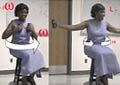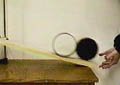| Conservation of angular momentum: holding masses on a rotating stool. |
