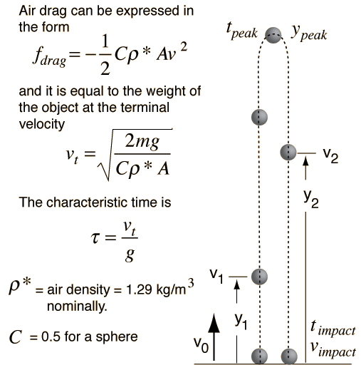 Vertical TrajectoryObjects moving at high speeds through air encounter air drag proportional to the square of the velocity. Describing the motion of objects under this quadratic drag usually requires numerical techniques rather than straight analytic formuli since the drag force and the gravitational force are not acting along the same line. The case of the vertical trajectory can be treated analytically since the forces are colinear. It is common practice to express the velocity and time in terms of the terminal velocity vt and a characteristic time t. ![]() Two common approaches to the quadratic drag force are: