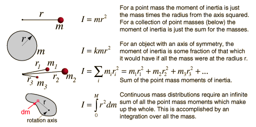 Since the moment of inertia of an ordinary object involves a continuous distribution of mass at a continually varying distance from any rotation axis, the calculation of moments of inertia generally involves calculus, the discipline of mathematics which can handle such continuous variables. Since the moment of inertia of a point mass is defined by