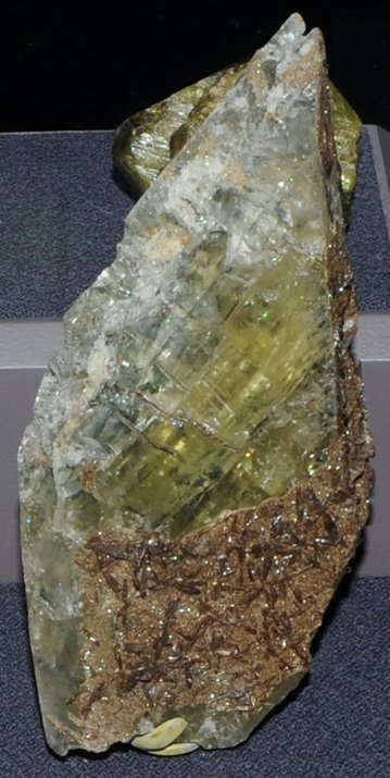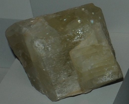 These samples of amblygonite are displayed in the Smithsonian Museum of Natural History. Amblygonite is a phosphate mineral which is a minor source of lithium . It has the composition (Li, Na)AlPO4(F,OH). This sample is about 10 x 20 cm and is from Lavra da Ilha, Taquaral, Minas Gerais, Brazil.