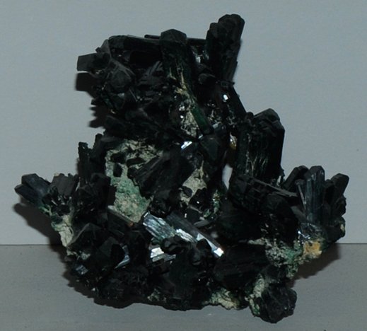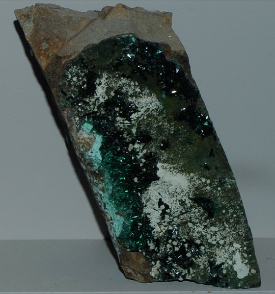 This sample of atacamite is about 5x10 cm and is from Copiapo, Atacama, Chile. It is described as atacamite with kaolinite.