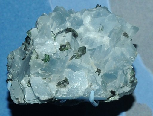 These samples of clintonite are displayed in the Smithsonian Museum of Natural History. Clintonite contains five of the big 8 elements plus fluorine with the composition Ca(Mg,Al)3(Al,Si)4O10(OH,F)2. The sample at left is about 7 cm across and is from Nicolai-Maximilianovsk mine, Achmatowsk, Zlatoust, Urals, Russia.