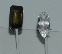 Enstatite is a silicate of magnesium with composition MgSiO3. These gems are 8.1 and 5.8 carats and are from Sri Lanka. They are on display at the Smithsonian Museum of Natural History.