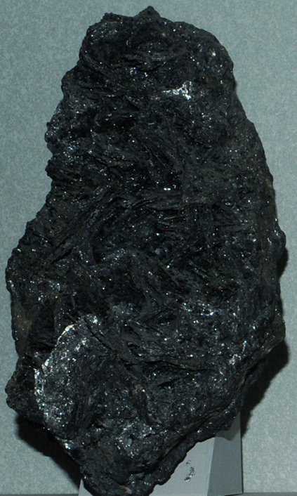 This sample of franckeite is displayed in the Smithsonian Museum of Natural History. Franckeite is a sulfide mineral of lead, tin and antimony with the composition Pb5Sn3Sb2S14. The sample at left is about 15 cm across and is from San Jose mine, Cerado, Oruro, Bolivia.