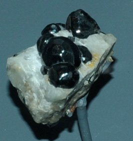 This sample of franklinite is displayed in the Smithsonian Museum of Natural History. Franklinite is a oxide mineral of zinc, manganese and iron with the composition (Zn,Mn,Fe)(Fe,Mn)2O4. The sample at left is franklinite with calcite. It is about 8 cm across and is from Franklin, New Jersey. The mineral and the town are named after Benjamin Franklin.