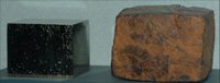 These samples of goethite are displayed in the Smithsonian Museum of Natural History. Goethite is an oxide mineral of iron with the composition FeO(OH). This sample is about 8x7 cm and it is from Park County, Colorado .