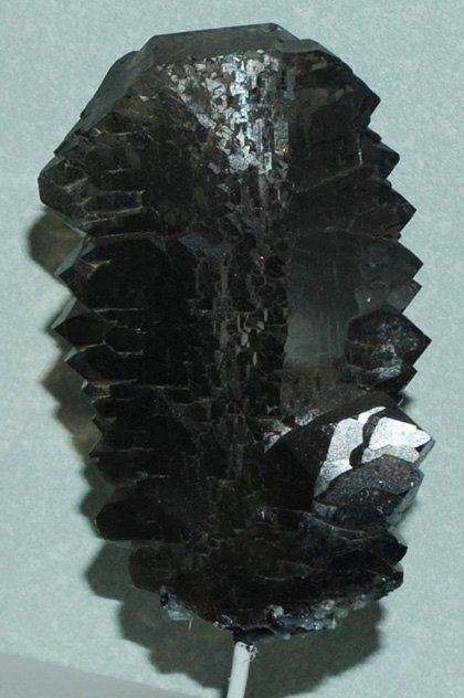 These samples of gwendel quartz are displayed in the Smithsonian Museum of Natural History. Gwendel is a variety of quartz , which has the composition SiO2. The sample at left is about 20 cm across and is from Tiefengletscher, Furka, Uri, Switzerland.