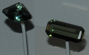 This sample of kornerupine is displayed in the Smithsonian Museum of Natural History. Kornerupine is a silicate mineral which contains boron as well as aluminum and magnesium. It has the composition Mg4Al6(Si,Al,B)5O21(OH). The sample at left is about 12 cm across and is from Oure Mississippi, Fiskernies district, Greenland.