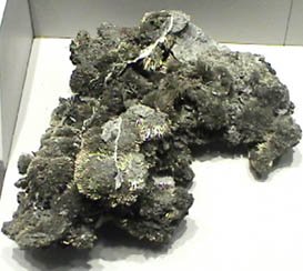 This large sample of millerite resembles a mound of moss. It is about 13x20 cm and is from Neunkirchen, Nord Rhein-Westphalen, Germany. Closer examination reveals the crystal whiskers.