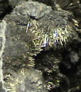 This sample of millerite is about 4x4 cm and is from Hall's Gap, Kentucky. It shows the characteristic crystal whiskers.