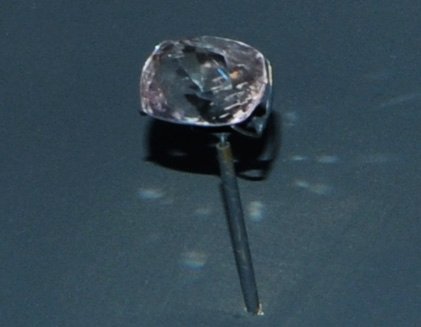 This sample of poudrettite is displayed in the Smithsonian Museum of Natural History. Poudrettite is a silicate mineral that contains boron as well as potassium and sodium It has the composition KNa2BSi12O30. The gem sample at left is 9.41 carats and is from Burma.