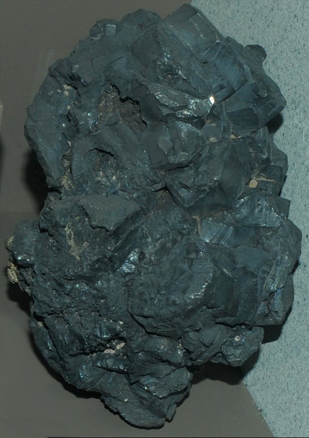 These samples of pyrargyrite are displayed in the Smithsonian Museum of Natural History. Pyrargyrite is an sulfide mineral of silver and antimony with the composition Ag3SbS3.