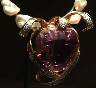 Spodumene is a silicate which contains lithium with composition LiAlSi2O9. This sample is about 35x45 cm and described as spodumene-bearing pegmatite. It is from Long Creek Church, Kings Mountain, North Carolina. These samples are on display at the Smithsonian Museum of Natural History.