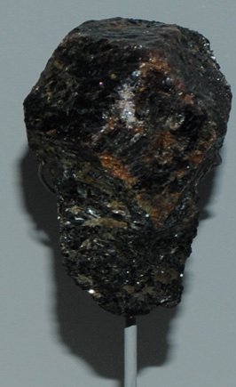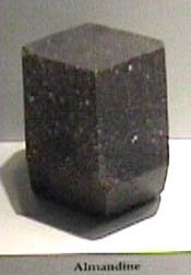 A silicate containing iron and aluminum, almandine has the composition Fe3Al2(SiO4)3. This sample of almandine originated in Southbury, Connecticut. The sample is 2-3cm across.