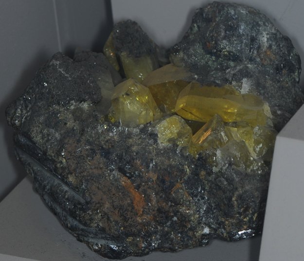 This sample of anglesite is about 13x16 cm and is from Tsumeb, Namibia.